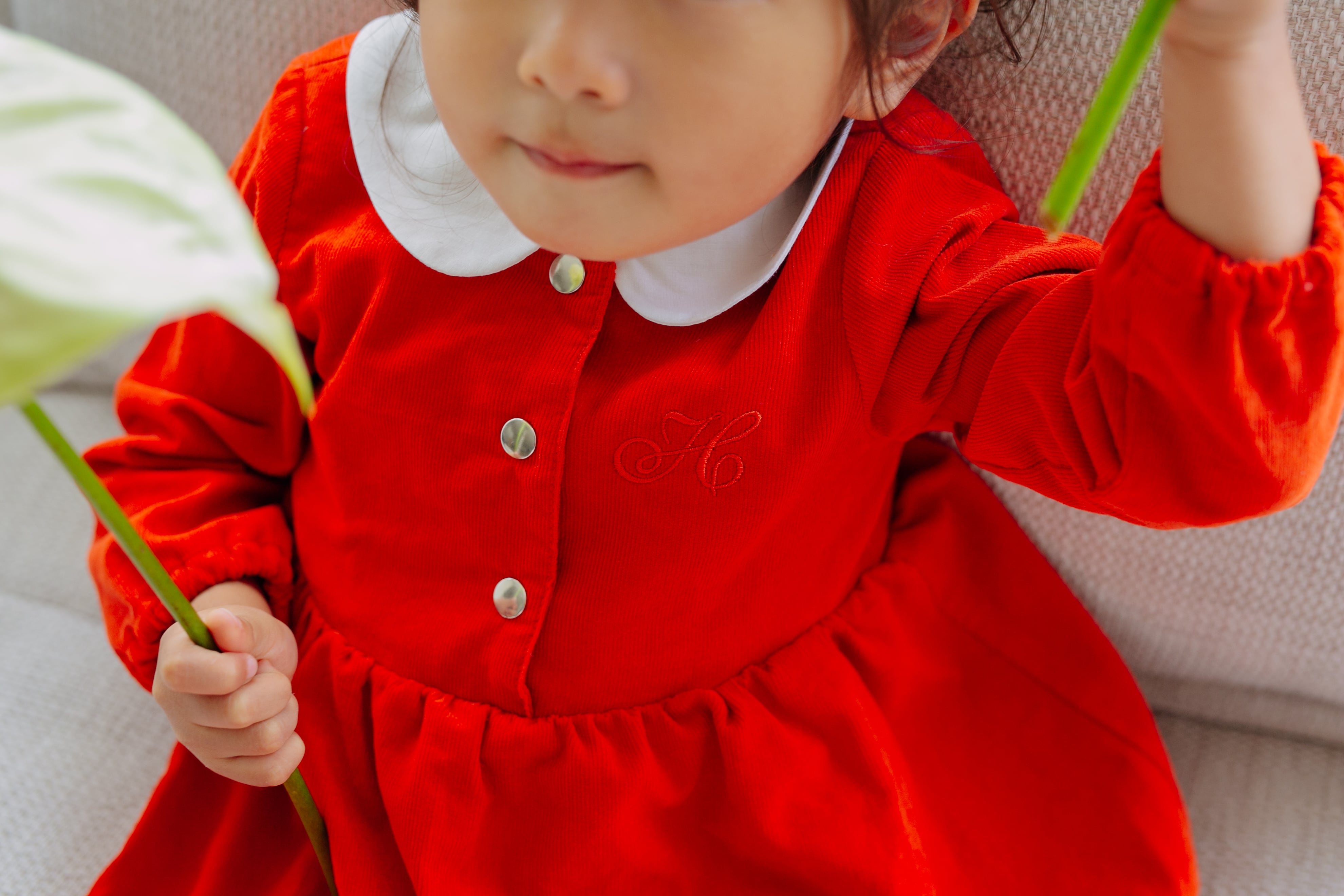 1度しかない子どもたちの幼少期を彩るために、上品で可愛らしいデザインにこだわっています。ジャストサイズで着ていただくサイズ感もデザイナーのこだわりです。